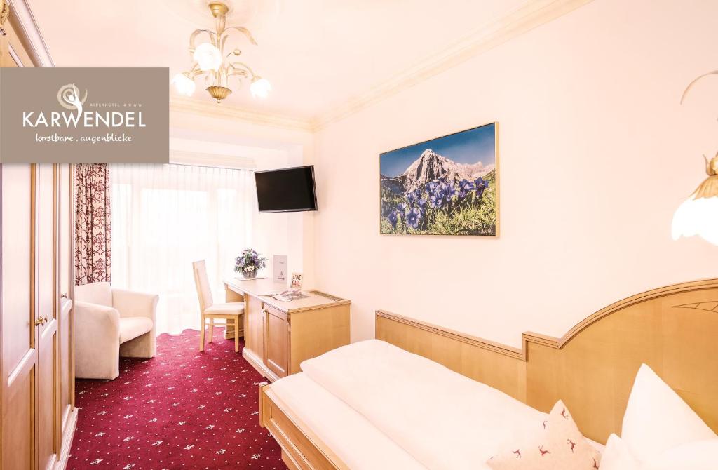 Das Alpenhotel Karwendel liegt am Fuße des Karwendelgebirges 1,200 m2 hoch über dem Meeresspiegel und verfügt über einen 2.000 m2 großen Wellnessbereich mit einem Innenpool, einem Fitnessraum und einem Fitnessraum sowie einen natürlichen, solarbeheizten Badesee nur im Sommer.