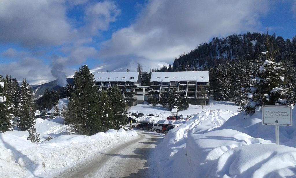 Das Apartment verfügt über eine Terrasse, direkten Zugang zu den Skipisten und eine Skiaufbewahrung.