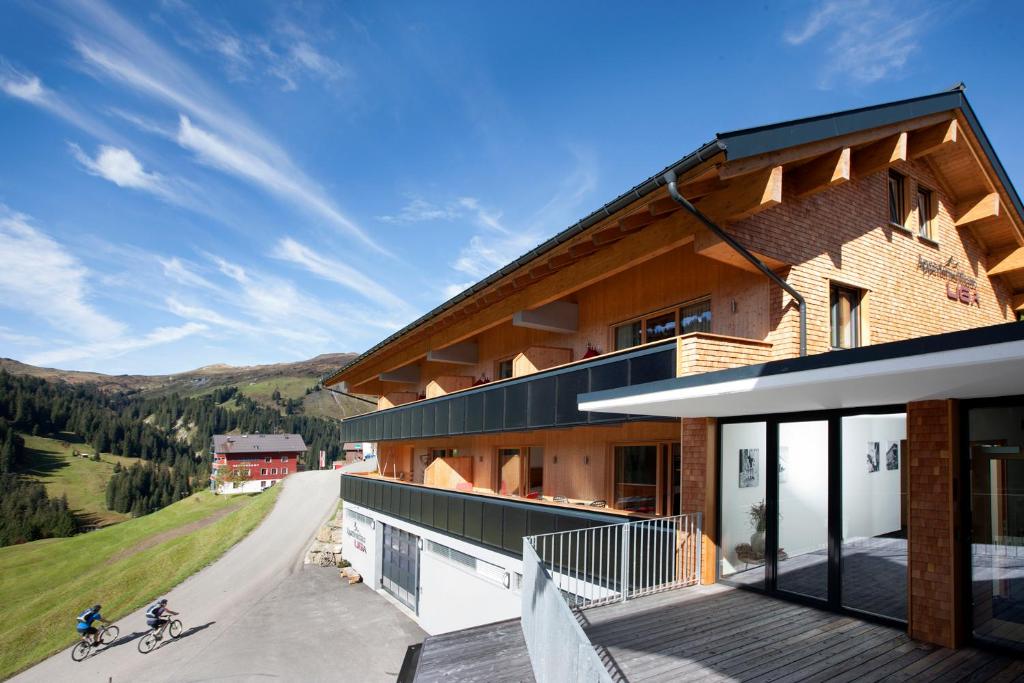 Wir, die Familie Moosbrugger (Carmen, Manfred, Jacob und Olivia), haben uns im Sommer 2010 entschieden für Sie ein exklusives Appartementhaus zu bauen! Nach einem arbeitsreichen Sommer 2011 konnten wir im Dezember termingerecht eröffnen. Unser Haus liegt mitten im Skigebiet am sonnigen Uga Hang und ist trotzdem das ganze Jahr mit dem Auto erreichbar. Um eine gemütliche Atmosphäre für Sie zu schaffen, haben wir uns bewusst für die natürlichen Rohstoffe Holz, Loden und Leinen bei der Einrichtung entschieden!