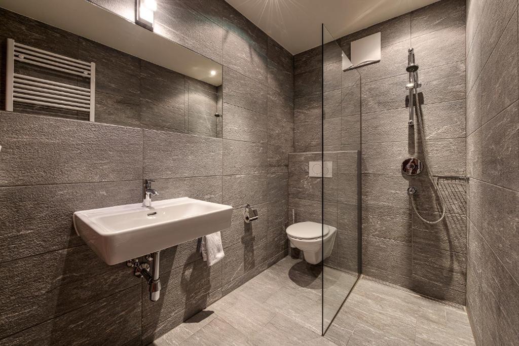 Die Zimmer bieten Blick auf die umliegende Alpenlandschaft. Zur weiteren Ausstattung gehören ein Sitzbereich mit Kabel-TV und ein eigenes Bad mit einer Dusche.
