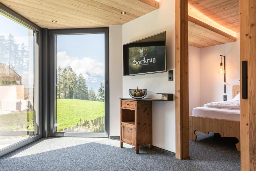 Rückzug in die Natur. Rückzug vom Alltag. Die Natur vor dem Fenster. Weniger Überfluss, mehr Ruhe. Weniger Trubel, mehr Freiheit. Auf einem Hochplateau (1200 Meter) thront der kleine Ort Mösern. Hier vereinen sich die aus edlen Naturmaterialen entstandenen Ferienwohnungen mit einem modernen Mountain-Lodge-Luxus und dem traditionellen Landleben. Umgeben von der Tiroler Bergwelt mit all ihrer Schönheit und ihren vielseitigen Möglichkeiten, im Sommer wie im Winter. Hier trifft man auf Authentizität und auf gelebte Traditionen. Zwischen satten Bergwiesen und duftenden Wäldern, nur wenige Meter von der Olympiaregion Seefeld entfernt, bietet das Dorfkrug-Urlaubsziel in Mösern einen Rückzugsort, getragen von echter Tiroler Gastfreundschaft die nicht vom Üben, sondern wirklich von Herzen kommt. Regionaler Genuss Der Dorfkrug zählt zu einer gefragten Urlaubs- und Genussadresse, in der auch das angrenzende Restaurant kulinarisch keine Wünsche offen lässt. Chef am Herd, Patrick Trois und sein Team, begeistern mit ebenso ehrlichen wie raffinierten Zubereitungen, die klassische Elemente mit Modernem, Regionalem und Saisonalem verbinden.