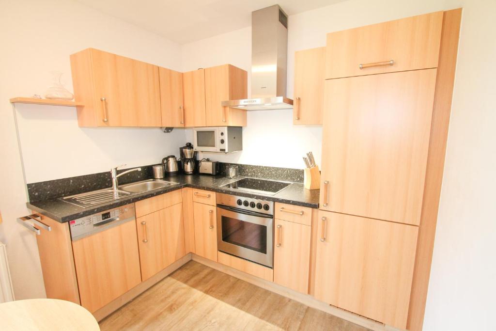 Alle Unterkünfte verfügen über einen Sitzbereich mit einem Sofa, einen Essbereich und eine voll ausgestattete Küche mit verschiedenen Kochmöglichkeiten, darunter ein Geschirrspüler, eine Mikrowelle, ein Kühlschrank und ein Backofen. Ein Kochfeld, ein Toaster, ein Wasserkocher und eine Kaffeemaschine sind ebenfalls vorhanden.