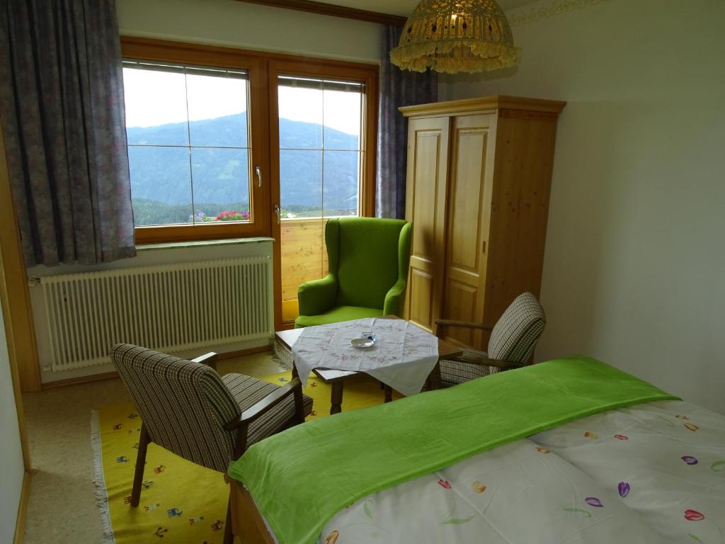 Entfliehen Sie dem Alltagsstress und finden Sie zur inneren Ruhe... Unser Haus liegt am Südhang des Greim, in sonniger, ruhiger Lage mit herrlichem Rundblick auf die Täler und Berge der Umgebung. Unsere Unterkunft ist ein idealer Ausgangspunkt für Wanderungen und Tourenskilauf. Wir bieten eine neue, große Ferienwohnung für 2 - 4 Personen. Ausstattung: 2 Schlafräume (mit Kinderbett), top ausgestattete Küche, DU/WC, Sat-TV und Balkon. Produkte aus dem eigenen Garten und eine Infrarotkabine runden unser Angebot ab. Der Red Bull Ring ist 60 km entfernt