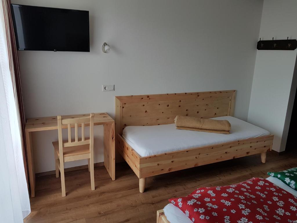 Unser Haus verfügt über eine Ferienwohnung mit ca. 42m² mit 1 Schlafzimmer, Bad, WC, Küche, Wohnraum mit ausziehbarer Couch (das auch als Schlafgelegenheit genutzt werden kann) und Balkon. Wenn es in der Wohnung mit zwei Personen zu eng ist, besteht die Möglichkeit ein Doppelzimmer oder ein Dreibettzimmer (dieses verfügt auch über einen Balkon und grenzt an die Ferienwohnung), sowohl beide am gleichen Gang befinden, dazu zu mieten. Diese Zimmer verfügen über Bad mit WC und Sat-TV. Somit haben maximal 9 Personen in unserem Haus Platz. Im Haus befindet sich noch ein Tischtennisraum und ein Aufenthaltraum mit Sat-TV für ca. 20 Personen.
