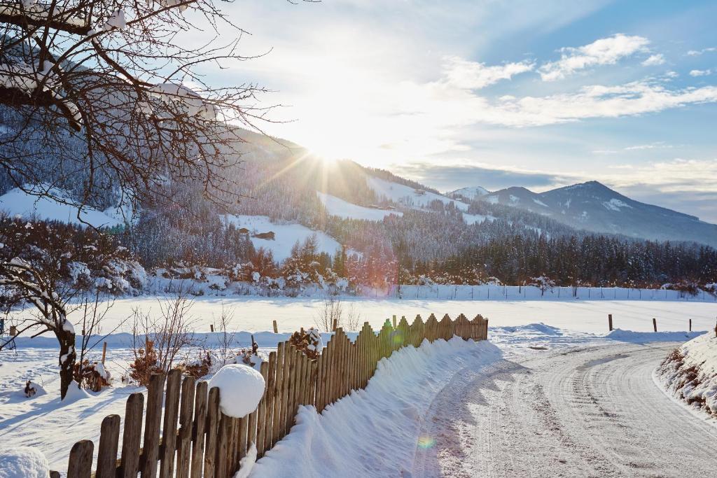 Das Urlaubsparadies Bogenhof - 5 Minuten zum Lift erwartet Sie mit einem Garten, einer Gemeinschaftslounge und einer Terrasse in Annaberg im Lammertal