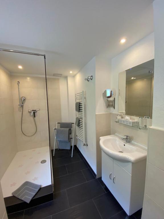 Das Haus bietet insgesasmt 3 Ferienwohnungen. Es liegt dierekt am Spazierweg und verfügt über einen kleinen Vorgarten. Der große Garten hinter dem Haus liegt direkt am Gießenbach. Je Wohnung steht ein Autoabstellplatz direkt am Grundstück, vor dem Haus zur Verfügung.