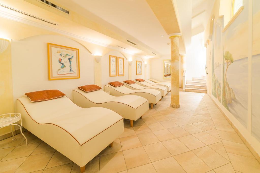 Zu den Wellnesseinrichtungen gehören ein Ruhebereich mit Panoramablick auf die Berge, 2 Saunen, ein Aromadampfbad, eine Salzkammer, ein Whirlpool und eine Infrarotkabine. Ein Fitnessraum und ein Spielzimmer für Kinder sind ebenfalls vorhanden.