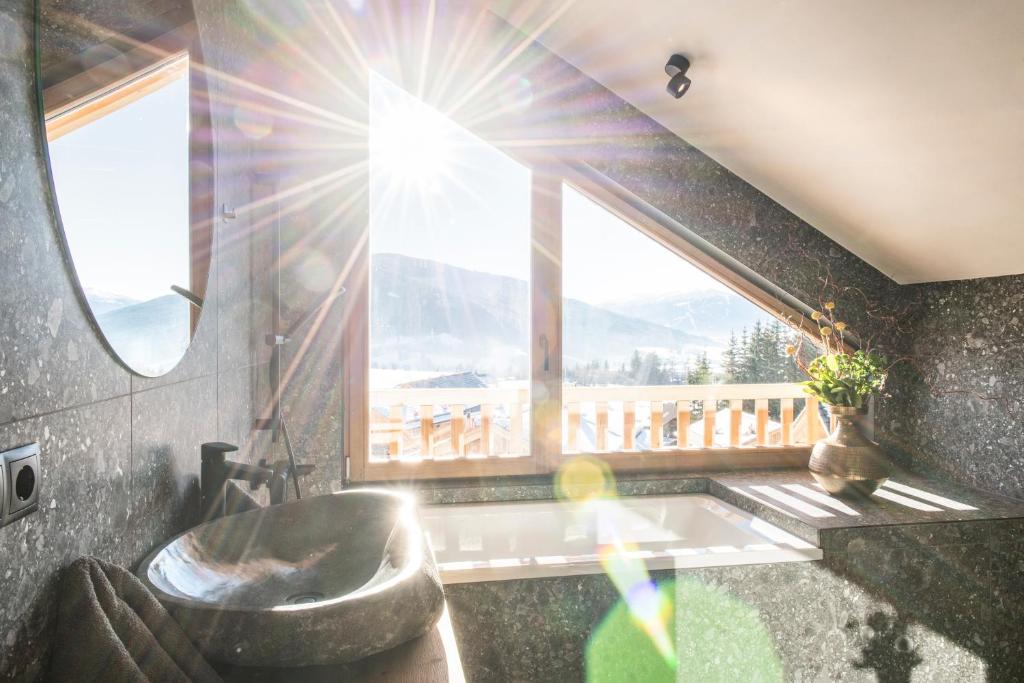 Die Unterkunft Lerchpeuntgut Alpenfreud Chalets mit Bergblick in Tamsweg bietet Übernachtungsmöglichkeiten mit einem saisonalen Außenpool, einem Garten, einer Gemeinschaftslounge, einer Terrasse und einem Restaurant. WLAN und Privatparkplätze sind ohne Aufpreis in der Unterkunft Lerchpeuntgut Alpenfreud Chalets vorhanden. Die Unterkunft Lerchpeuntgut Alpenfreud Chalets bietet ihren Gästen einen Balkon, Gartenblick, einen Sitzbereich, einen Satelliten Flachbild-TV, eine voll ausgestattete Küche mit einem Kühlschrank und einem Geschirrspüler sowie ein eigenes Badezimmer mit einer Dusche und Bademänteln. Es gibt einen Ofen und eine Herdplatte sowie auch eine Kaffeemaschine und einen Wasserkocher. In der Unterkunft Lerchpeuntgut Alpenfreud Chalets können Gäste eine Sauna nutzen. In der Umgebung gibt es Möglichkeiten zum Wandern, Skifahren und Fahrradfahren. Die Unterkunft Lerchpeuntgut Alpenfreud Chalets bietet eine Reihe von Wassersportmöglichkeiten. Die Sehenswürdigkeit Burg Mauterndorf liegt 13 km von der Unterkunft Lerchpeuntgut Alpenfreud Chalets entfernt, während die Sehenswürdigkeit Grosseck-Speiereck 14 km von der Unterkunft entfernt ist. Der nächstgelegene Flughafen ist der Flughafen Salzburg, 122 km von der Unterkunft Lerchpeuntgut Alpenfreud Chalets entfernt. Die Unterkunft bietet einen kostenpflichtigen Flughafentransfer.