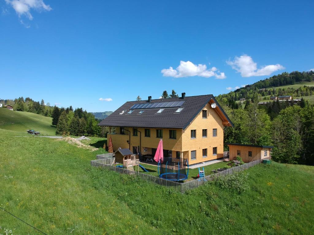 Im Herzen des Bregenzerwaldes wohnen wir mit unseren drei Kindern im neu erbauten Eigenheim. Die Ferienwohnung liegt ruhig und doch zentral am Ortsrand von Hittisau. In wenigen Gehminuten erreichen sie das Schwimmbad oder beginnen direkt eine Wanderung vor der Unterkunft. Ski Fahren oder Langlaufen im Winter ist durch den Skilift im Ort eine tolle Freizeitaktivität. Den hauseigenen Spielplatz dürfen die Kinder der Gäste natürlich mit benutzen.