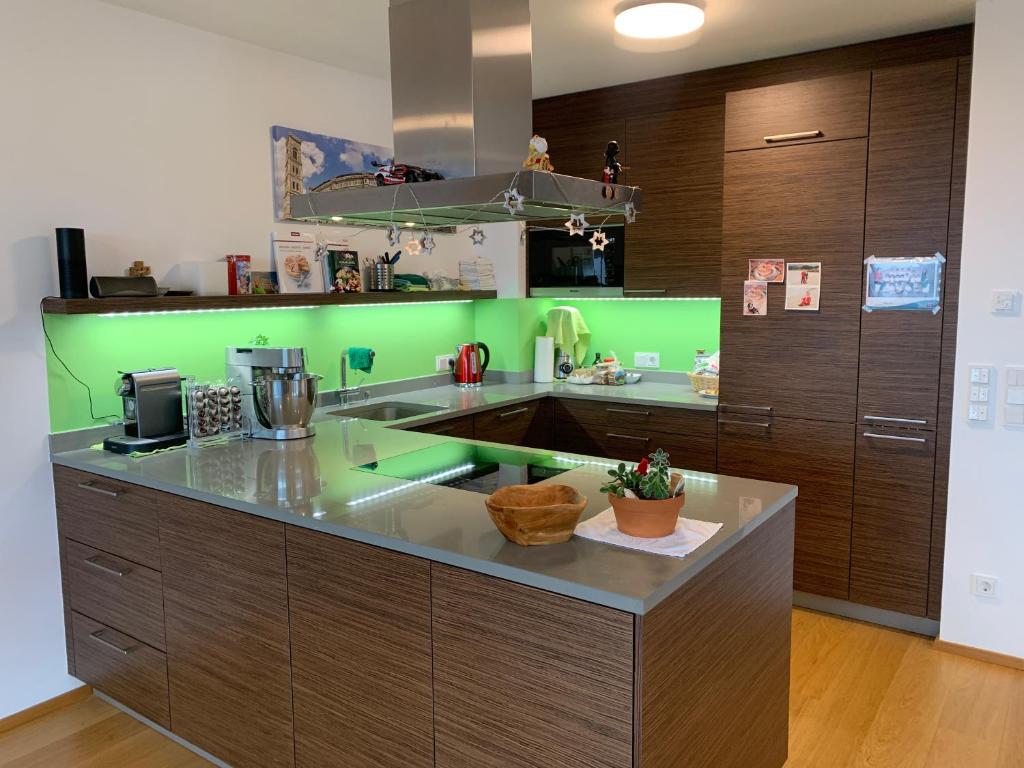 Unser Penthouse ist brandneu und wurde 2015 fertiggestellt. Wir haben nur qualitativ hochwertige Materialien & Firmen für die Ausstattung, Möbel und Geräte verwendet. Die Designerküche ist komplett ausgestattet mit Miele Geräten, das Badezimmer hat einen sehr seltenen Teak Holzboden und einen luxuriösen Whirlpool und eine riesige maßangefertigte Dusche. Alle anderen Zimmer haben sehr hochwertige Eichenholzdielen. Wir stellen frische, saubere Bettwäsche & -laken und Handtücher für unsere Gäste zur Verfügung. Ausserdem haben wir den neuesten OLED TV von LG installiert sowie Hochgeschwindigkeitsinternet via Wifi. Der Fernseher ist mit dem Internet verbunden und ihr könnt euch direkt in eure Amazon Prime, Netflix etc. Konten einloggen und eure Lieblingsfilme und Serien anschauen. Es gibt eine riesige Terasse um das ganze Penthouse mit einem einmaligen Ausblick auf die Berge und die Stadt Bregenz. Hier kann man sich gut erholen und die Sonne geniessen. Unser Penthouse ist sehr Baby- und Kleinkinderfreundlich ausgestattet. Es gibt alle notwendigen Dinge, die man für die Kleinen braucht: Stokke Tripp Trapp Hochstuhl, Plastikgeschirr & -besteck, Spielzimmer mit vielem Spielzeug (Lego, P