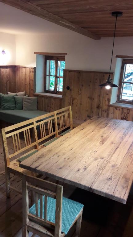 Der historische Kern unseres Hauses stammt aus dem frühen 16. Jahrhundert. Nichtsdestotrotz brauchen Sie auf keine Annehmlichkeiten verzichten, denn im Zeitraum Oktober 2019 bis Juni 2020 wurde der Wohntrakt neu saniert und komplett neu ausgestattet. Bei dieser Sanierung wurde Bedacht auf das ehrwürdige Alter des Gebäudes gelegt und so ist der unebene Holzdielenboden sicherlich gewöhnungsbedürftig. Die Möblierung erfolgte hauptsächlich in Altholz, welches dem Wohnbereich in Kombination mit den alten Holzfenstern ein besonderes Flair verleiht. Auch eines der beiden Schlafzimmer ist im Original erhalten geblieben und verfügt über handbemalte Betten und einem alten Bauernkasten. Ansonsten brauchen Sie auf Nichts verzichten, die Küche ist mit einem Kühlschrank, Backrohr, Geschirrspüler und einer Kochinsel ausgestattet. Im Badezimmer können Sie neben einer Brause auch ein angenehmes Bad genießen und jeder Raum ist beheizt (Elektroheizung). In der Stube strahlt ein Kaminofen Behaglichkeit und Wärme aus. Einen Fernseher suchen Sie bei uns vergebens. Gerade in unserer hektischen und schnelllebigen Zeit, ist das Plötzhaus der ideale Ferienort, um dem hektischen Alltag entfliehen zu können.