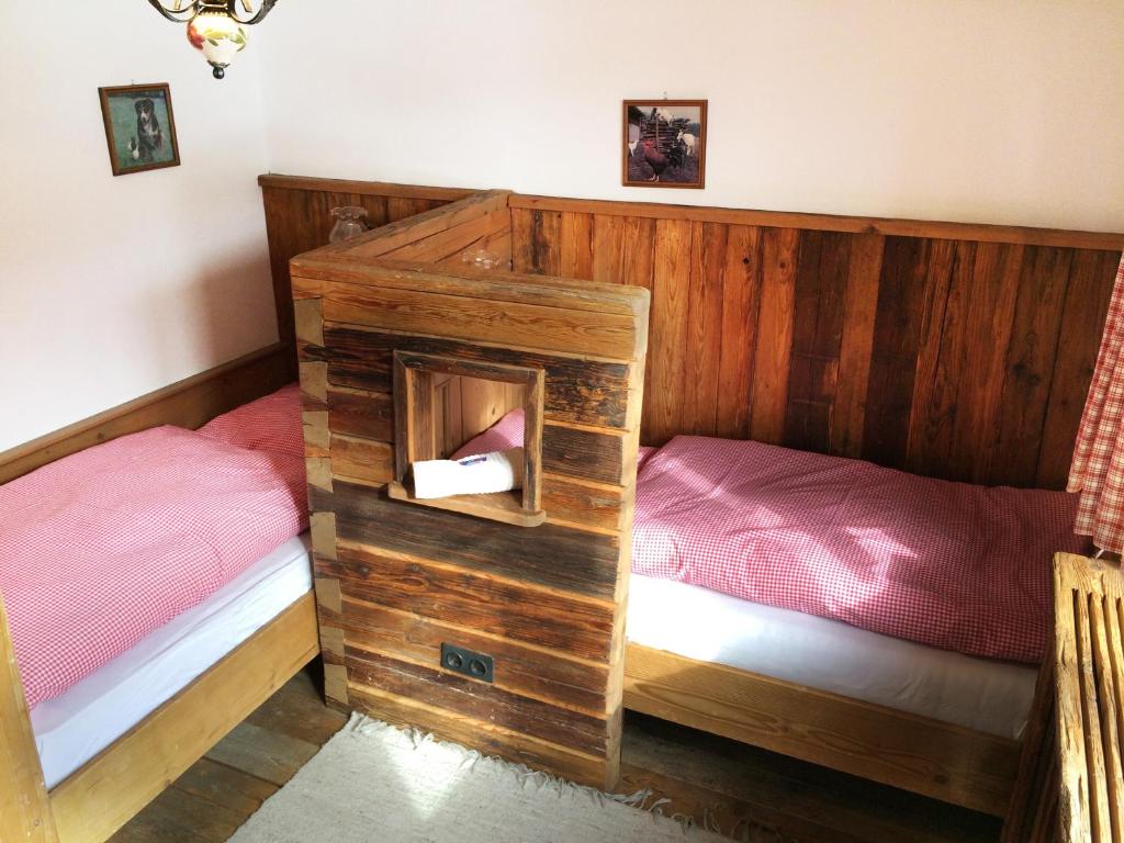 Das Apartment ist ein typisch steirisches Romantikzimmer mit gemütlichem Himmelbett, eingebaut in einem unvergesslichem Ambiente aus urigem Altholz. Wohlige Kachelofenwärme bei kalten Nächten, eine romantische Badestube mit Whirlpool, Fussbodenheizung und steirischem Quellwasser sorgen für reichlich Wohlbefinden. Desweiteren hat das Apartment eine Küchenzeile und eine gemütliche Essecke. Das Apartment hat einen separaten Eingang mit eigenem Aussenbereich und Sitzgruppe mit Blick auf Wald und Weiden der Tiere.