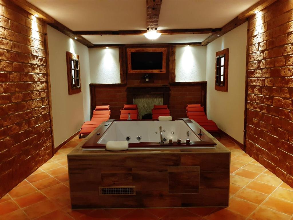 Das Ferienhaus bietet eine Reihe von Wellnesseinrichtungen wie einen Whirlpool und eine Sauna. Die Schönberghütte bietet einen Garten, einen Grill und einen Kinderspielplatz.
