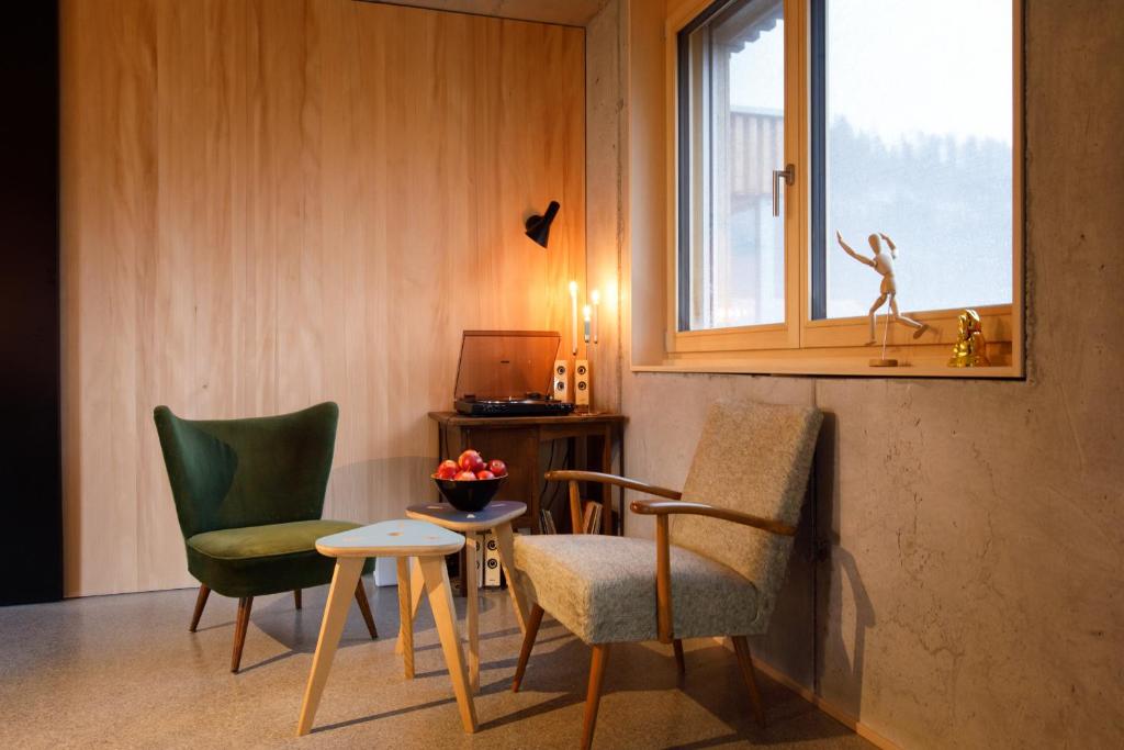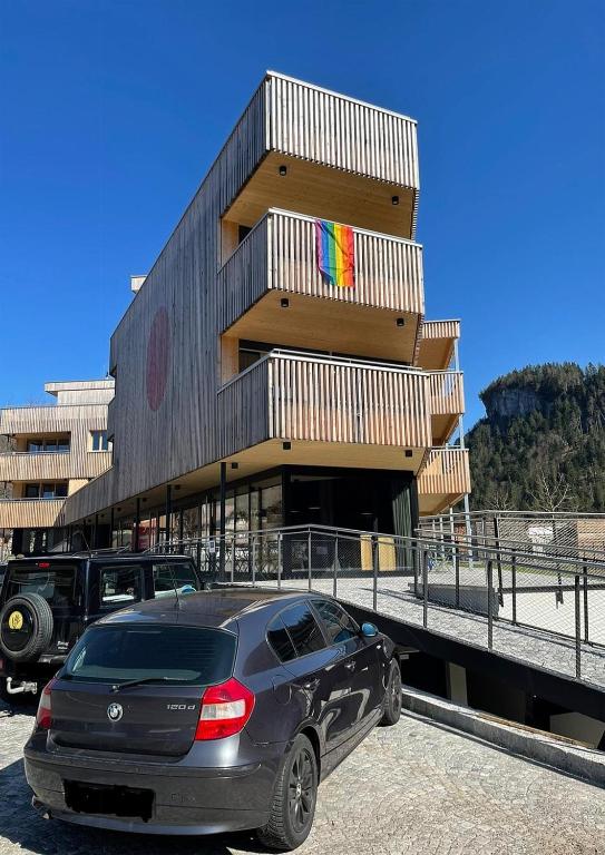 Neu! Das Stud!o 8 ist nicht nur eine Ferienwohnung sondern auch ein Kunstraum! Darum auch die Bezeichnung "Art -Hideaway Inn" - für 1-5 Personen, 60 m². gratis WLAN!! Es gibt 2 Schlafzimmer, einen offenen Wohnraum mit Plattenspieler, eine hochwertige Wohnküche – mit komplett Ausstattung, + Esstisch mit 6 Stühlen + Lesebereich mit Polsterstühlen. WC, Bad + Dusche + Meraki Pflege Produkte (organisch), + Fön ist alles zu ihrer Verwendung! Großzügige Terrasse mit Sitzgelegenheiten und Raucher- Möglichkeit. Eines der Schlafzimmer ist als Kino + TV + Sound Raum ausgeführt (hier können auch gängige Videospiel Konsolen angeschlossen werden - sehr gute Qualität!) . Mit Leinwand und Beamer, Prime Video, Sonos Sound System. Der Wohnraum befindet ich im 2. Obergeschoss, mit wunderbarer Aussicht auf das Bergpanorama! Tiefgarage mit Kellerabteil und Fahrradraum. Leih- Fahrräder für meine Gäste. In der Nähe: Wanderwege, Zentrum, Skibus, Einkaufsmöglichkeiten, Gastronomie, Wellness, Loipe, Bushaltestelle, . Restaurant im Erdgeschoss. (Komot - Nudla, drinks & more)
