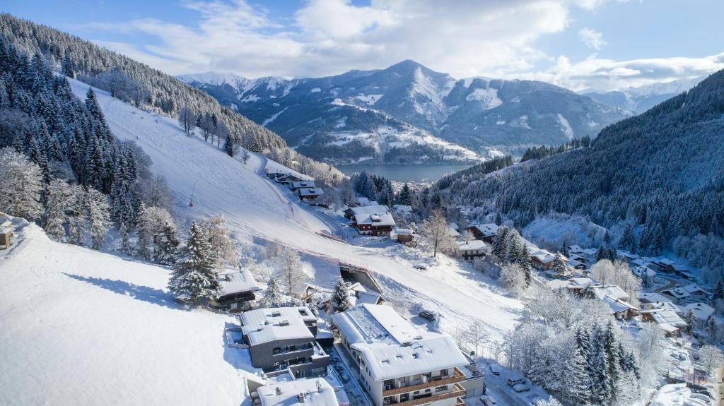 Die 5 Comfort Apartments verfügen alle über einen modernen alpinen Stil mit hochwertigen Möbeln und Panoramafenstern mit Blick auf das Skigebiet Schmittenhöhe und die umliegenden Berge.