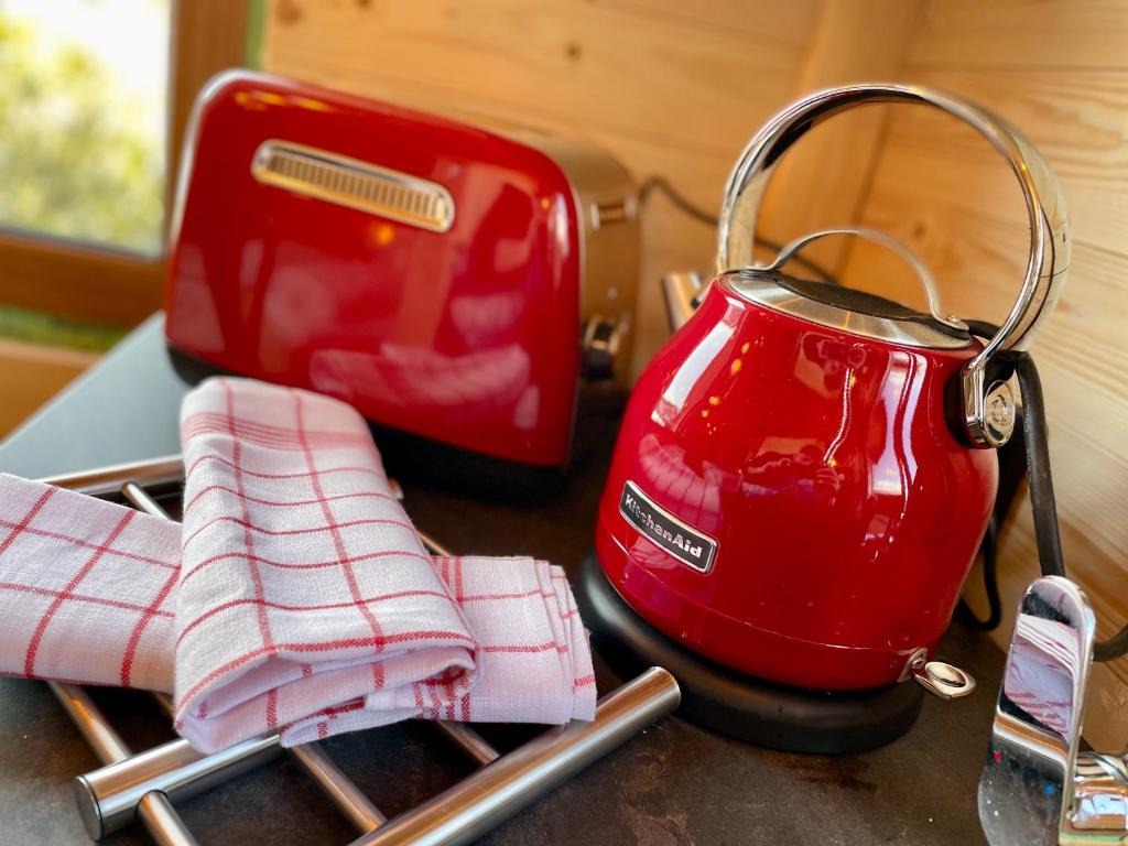 Dieses Chalet verfügt über 1 Schlafzimmer, einen Flachbild-TV, einen Essbereich und eine Küche mit einer Mikrowelle und einem Kühlschrank. Handtücher und Bettwäsche werden gestellt.