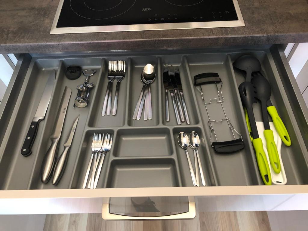 Dieses Apartment im Erdgeschoss verfügt über 1 Schlafzimmer, eine gut ausgestattete Küche mit einem Geschirrspüler und einer Mikrowelle, ein Wohnzimmer und einen Flachbild-TV. Handtücher und Bettwäsche werden in dieser Unterkunft gestellt.